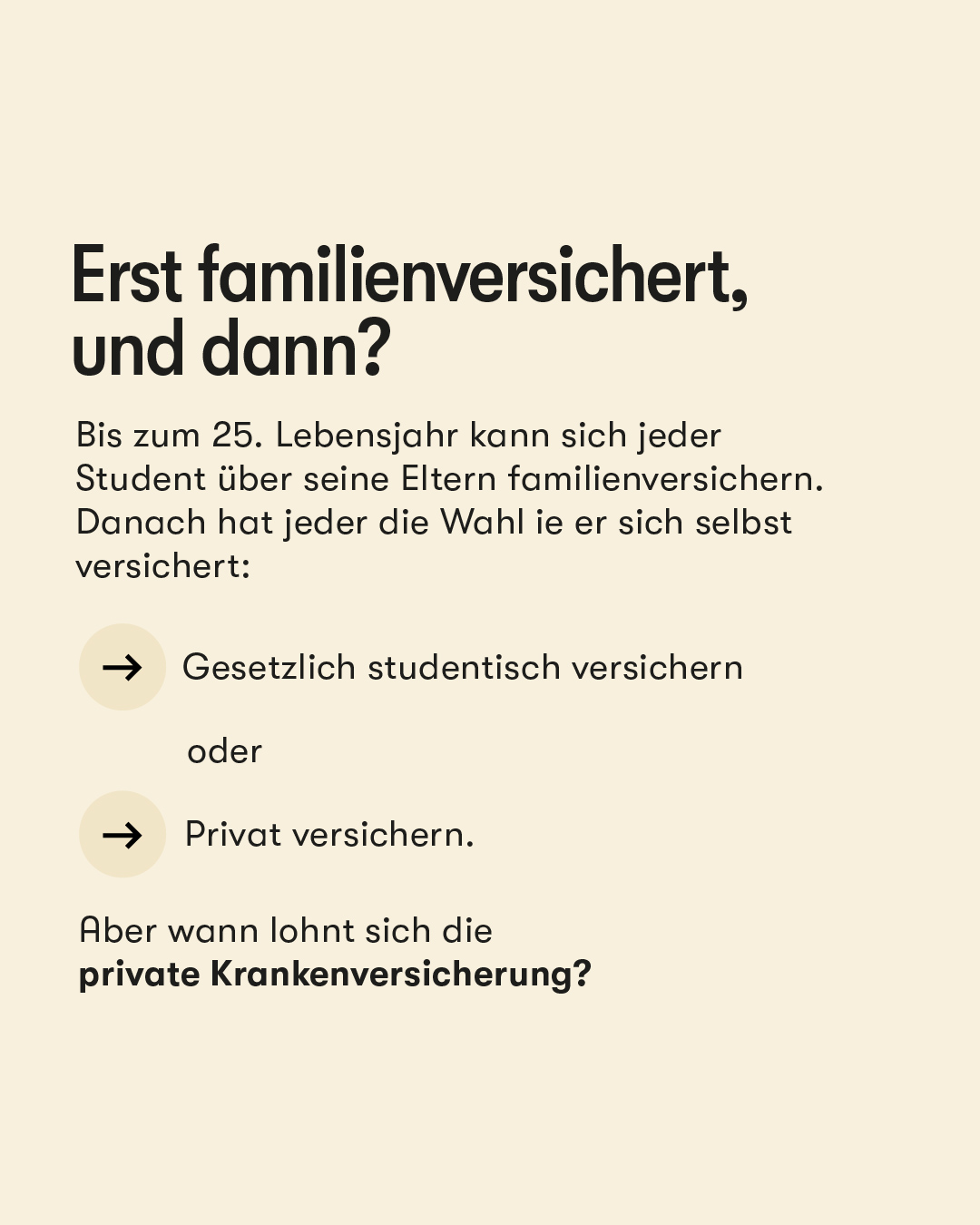Gut zu wissen: Als Studierende:r oder Azubi in bestimmten Berufen kannst du jetzt besonders günstig in unsere private Krankenversicherung einsteigen – mit allen Leistungen. 🙌