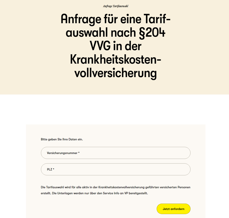 Mit dem neuen Feature über unsere Website wird die Anforderung der Tarifauswahl für die Krankheitskostenvollversicherung automatisiert.