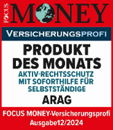 Wir freuen uns, dass Focus Money unseren ARAG Rechtsschutz mit Soforthilfe für Selbstständige mit dem Titel „Produkt des Monats“ auszeichnet.